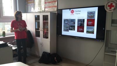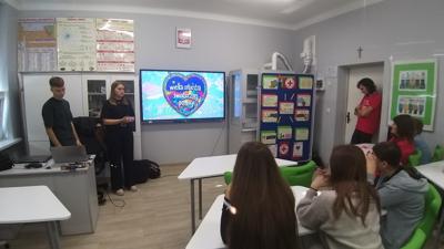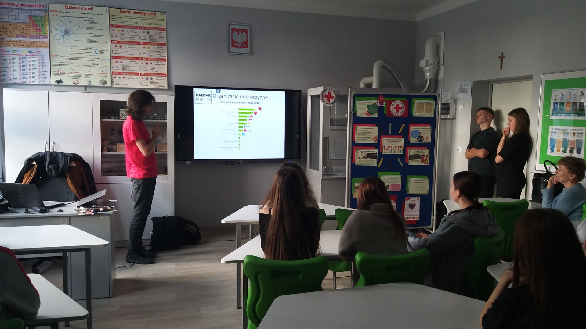 W naszej szkole gościliśmy wolontariuszy Szlachetnej Paczki - p. Bartłomieja Pokusińskiego, wolontariuszy WOŚP oraz wolontariuszy sportowych - Weronikę Górzyńską i Szymona Niebelskiego, którzy przybliżyli nam pracę w wolontariacie, a także zachęcili do zaangażowania się w pomoc na rzecz drugiego człowieka.