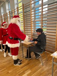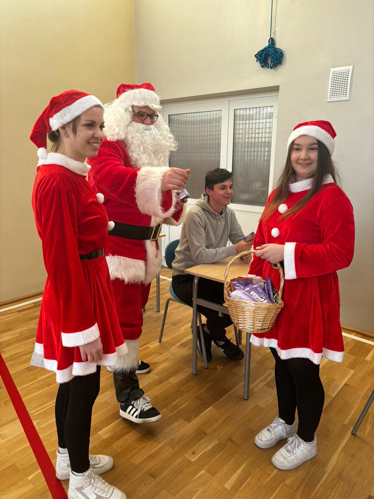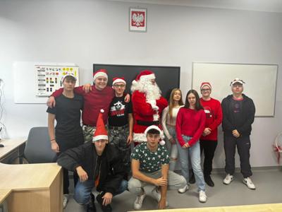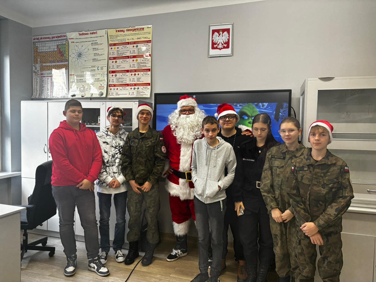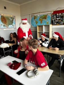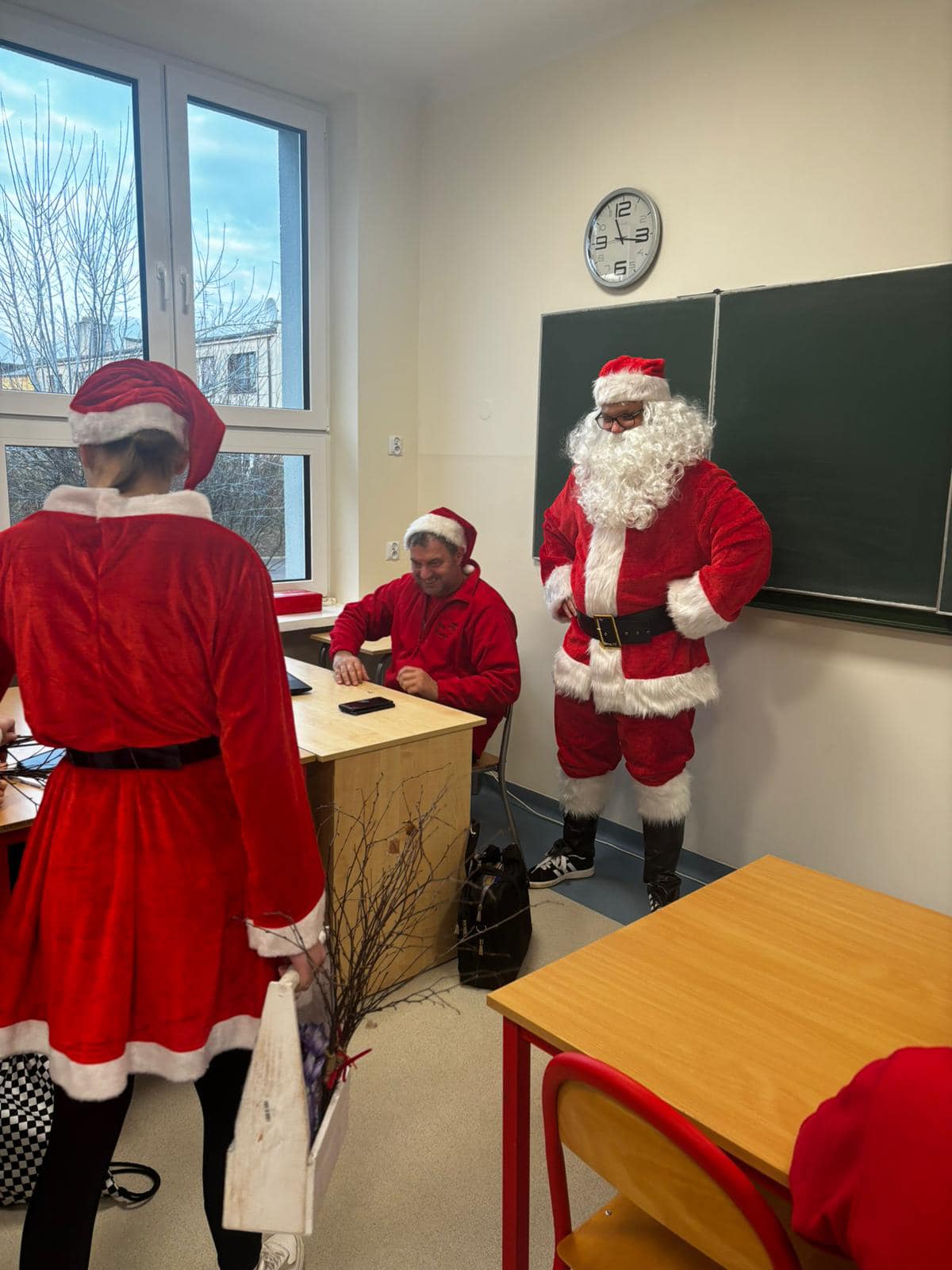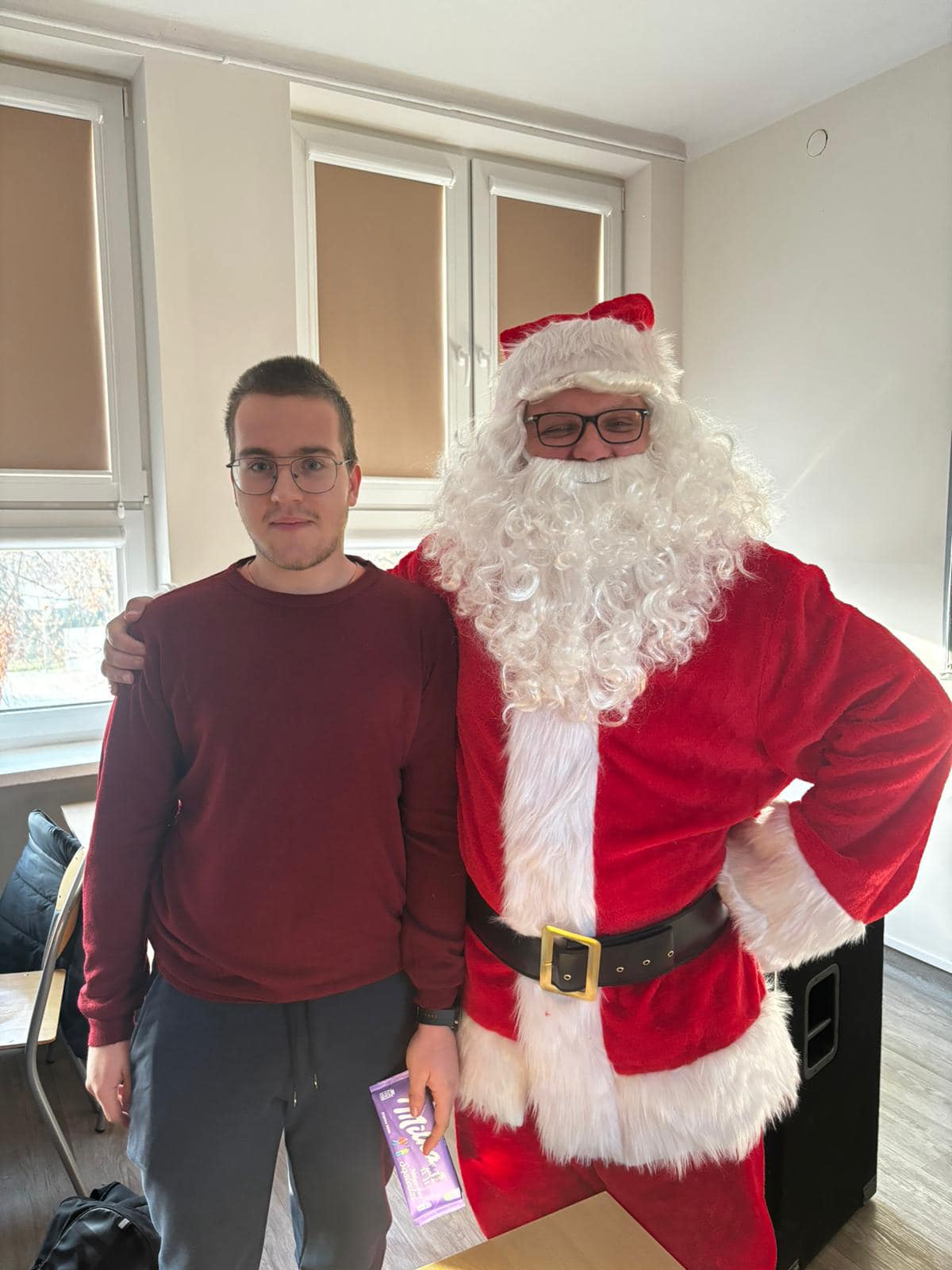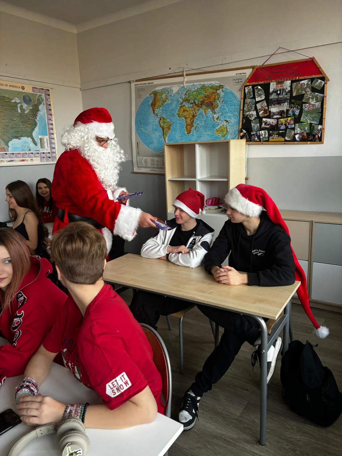 Nie zabrakło radości, uśmiechów i wspólnej integracji całej społeczności szkolnej. 🎉 Nawet maturzyści, mimo że zmagali się z próbną maturą z matematyki, zostali odwiedzeni przez Mikołaja – w końcu świąteczna magia jest dla każdego! 🎁