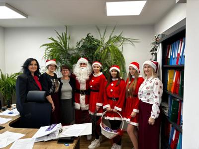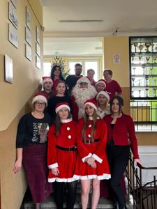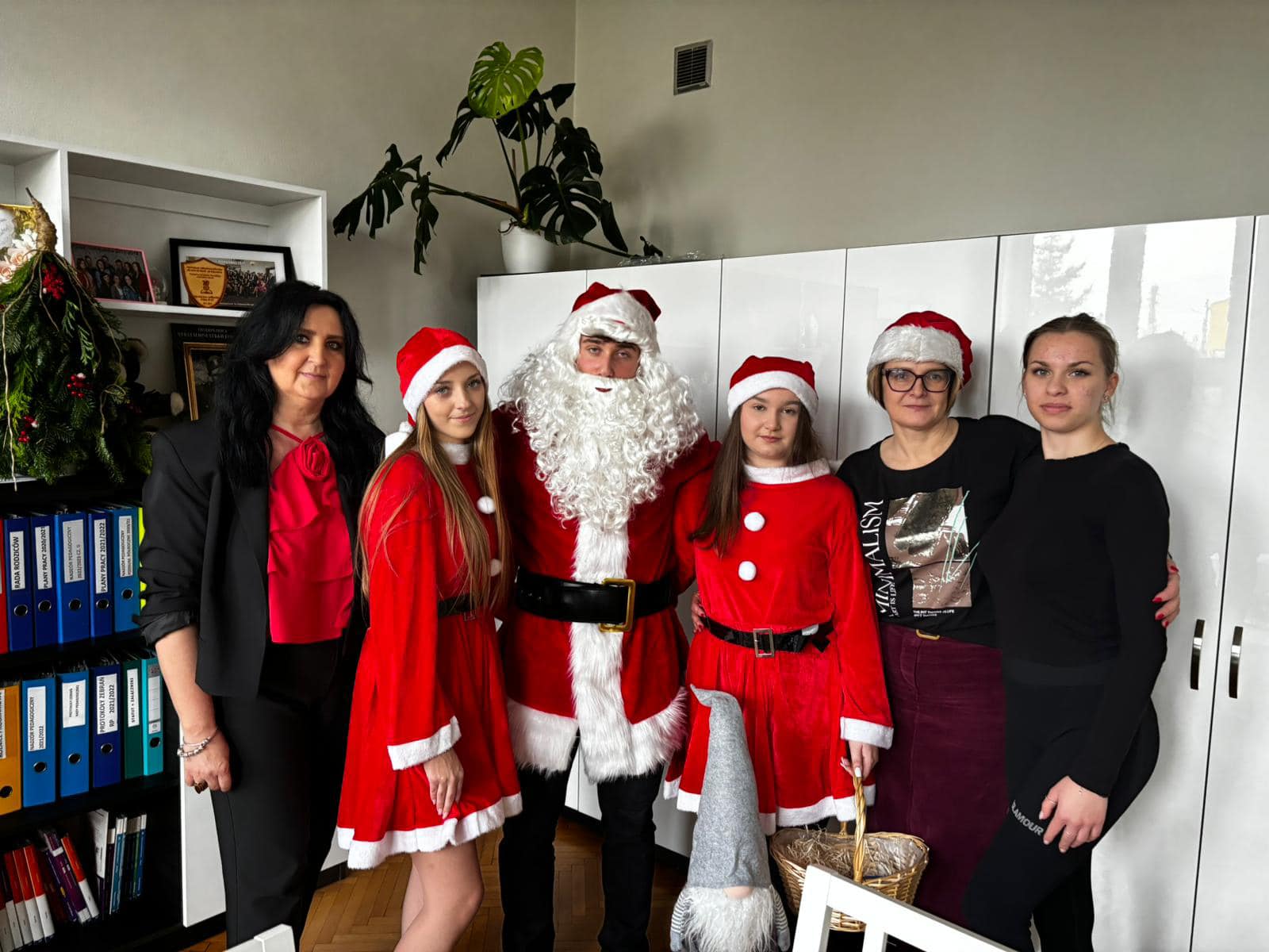 Dziś był z nami prawdziwy Mikołaj w towarzystwie uroczych Śnieżynek, a uczniowie, nauczyciele oraz pracownicy administracji i obsługi pokazali prawdziwego ducha świąt, zakładając mikołajkowe czapki i czerwone stroje. 🎄 Dominujący kolor dnia? Oczywiście czerwony! ♥️