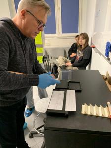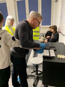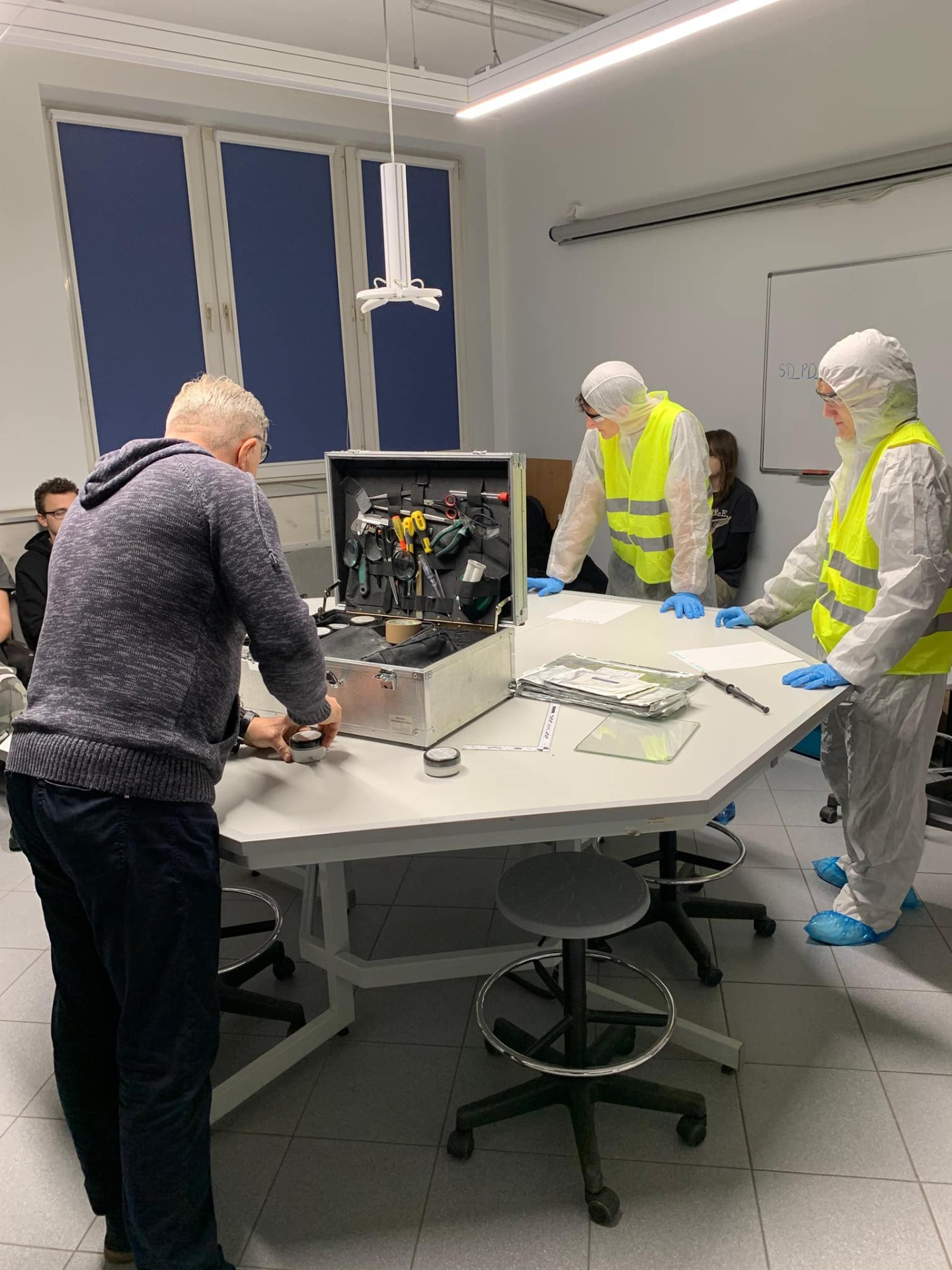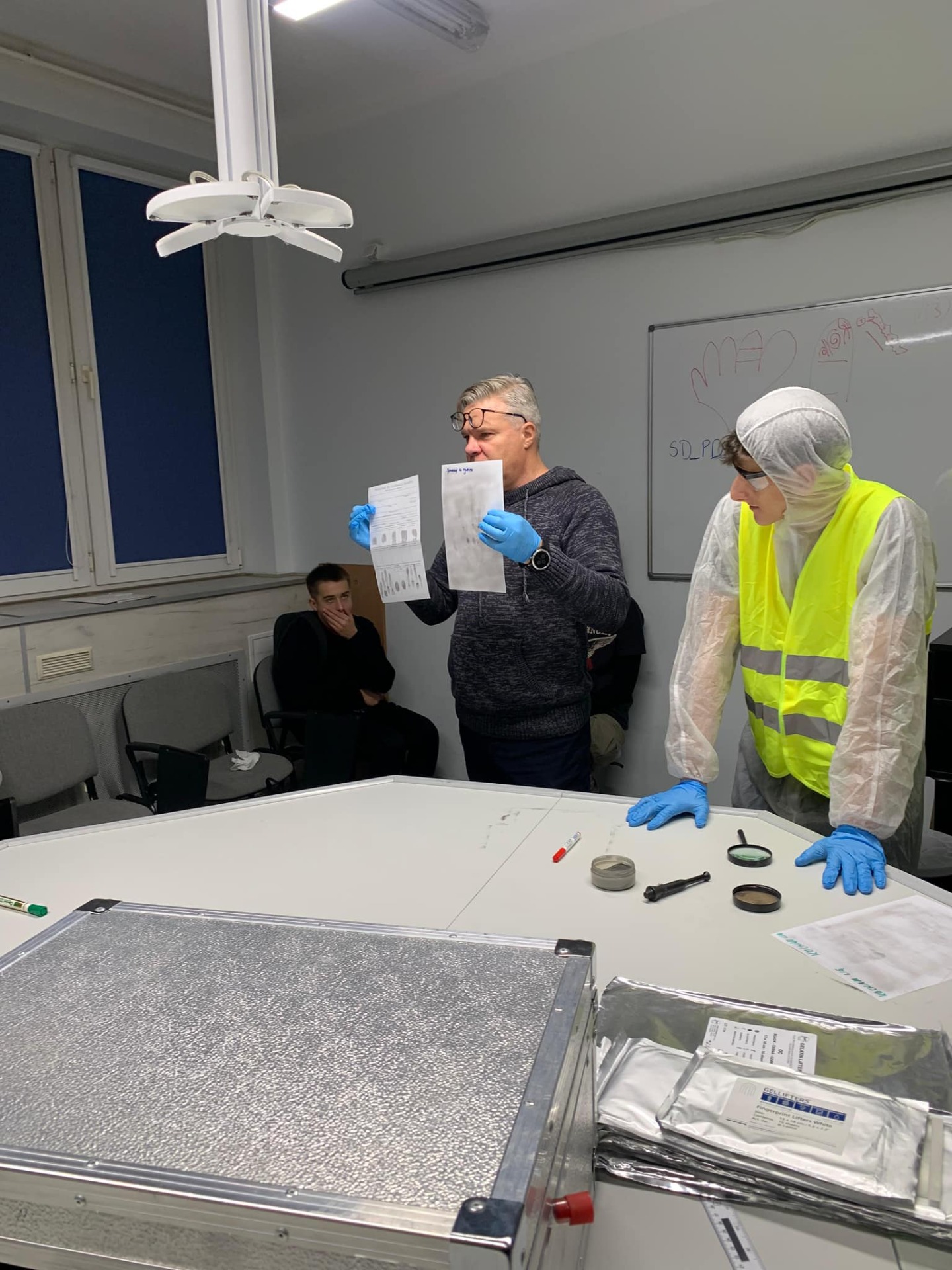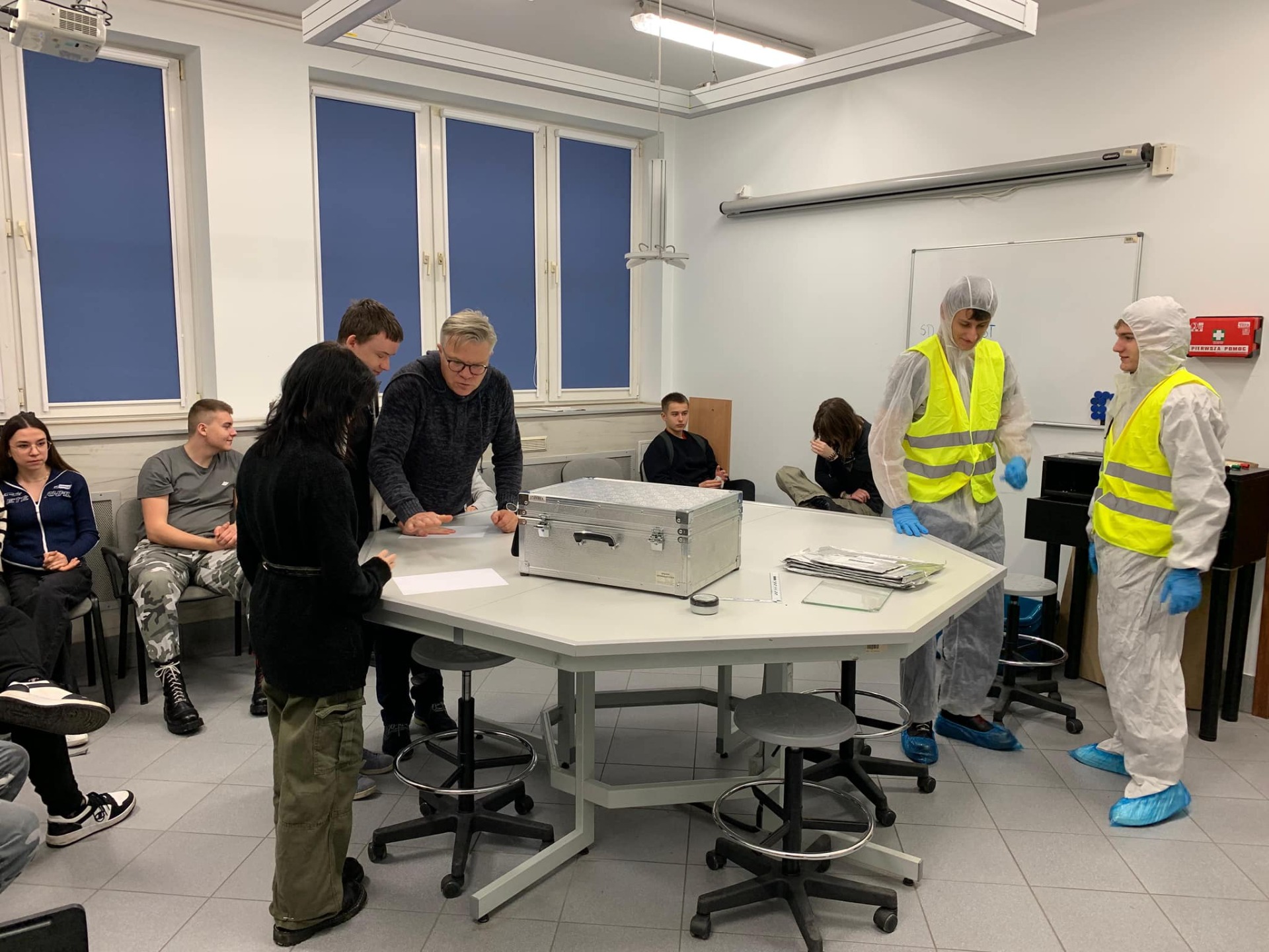 🔎dr Jacek Copik przeprowadził zajęcia w pracowni kryminalistycznej, podczas których pokazał uczniom jak zabezpieczać ślady na miejscu zbrodni.