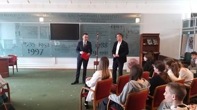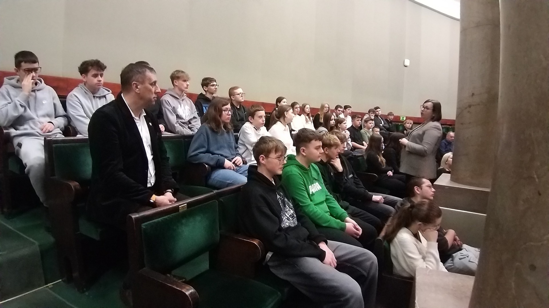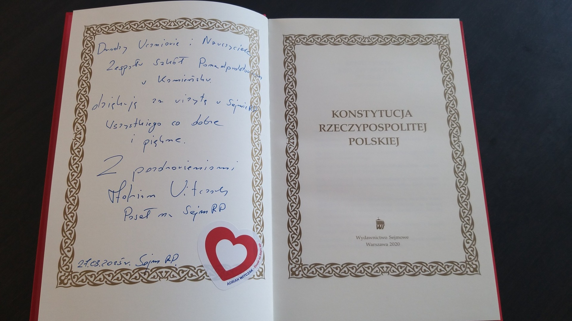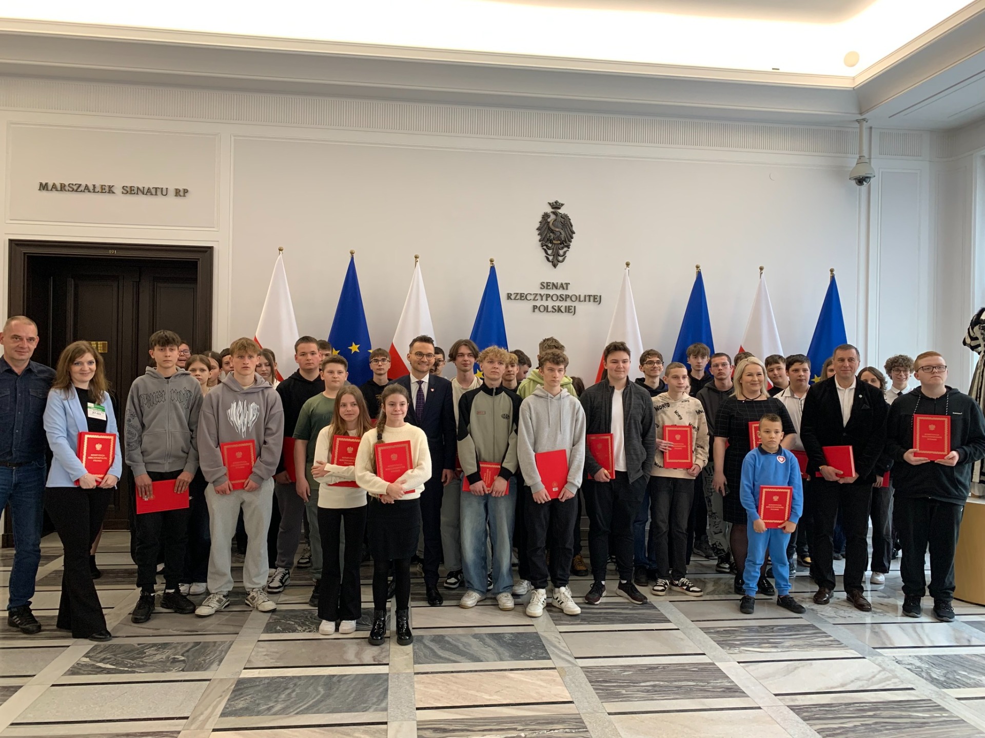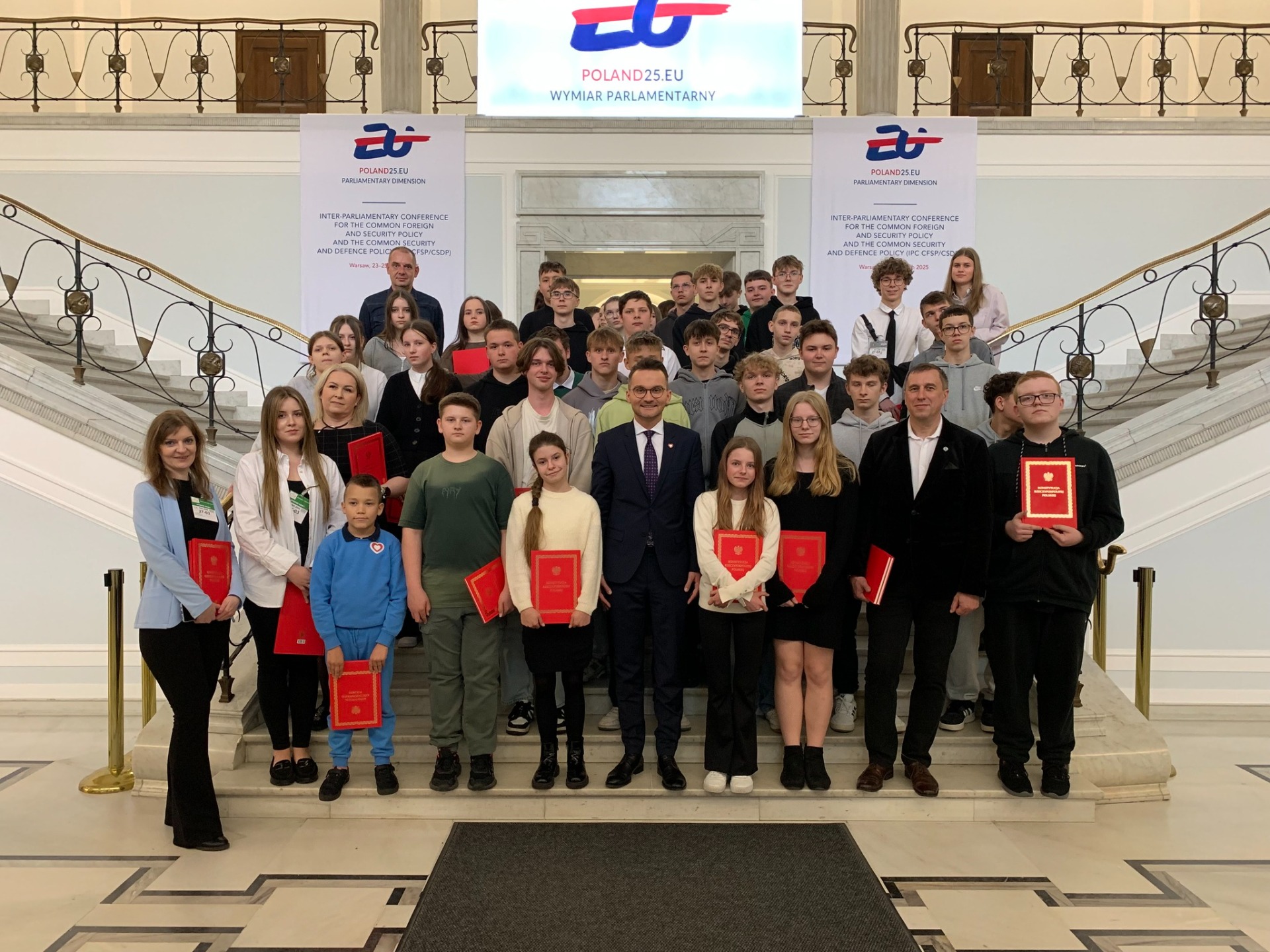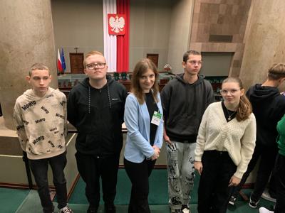 Uczniowie mieli także możliwość spotkania się z posłem p. Adrianem Witczakiem - Posłem na Sejm RP, który opowiedział im o swojej pracy, obowiązkach i wyzwaniach, z którymi się mierzy. 💬 Na pamiątkę, każdy z nas otrzymał od posła Konstytucję Rzeczypospolitej Polskiej. To była świetna okazja, by zobaczyć od środka, jak funkcjonuje polski parlament, poznać historię podejmowanych tu decyzji oraz zobaczyć miejsca, w których zapadają najważniejsze sprawy kraju.