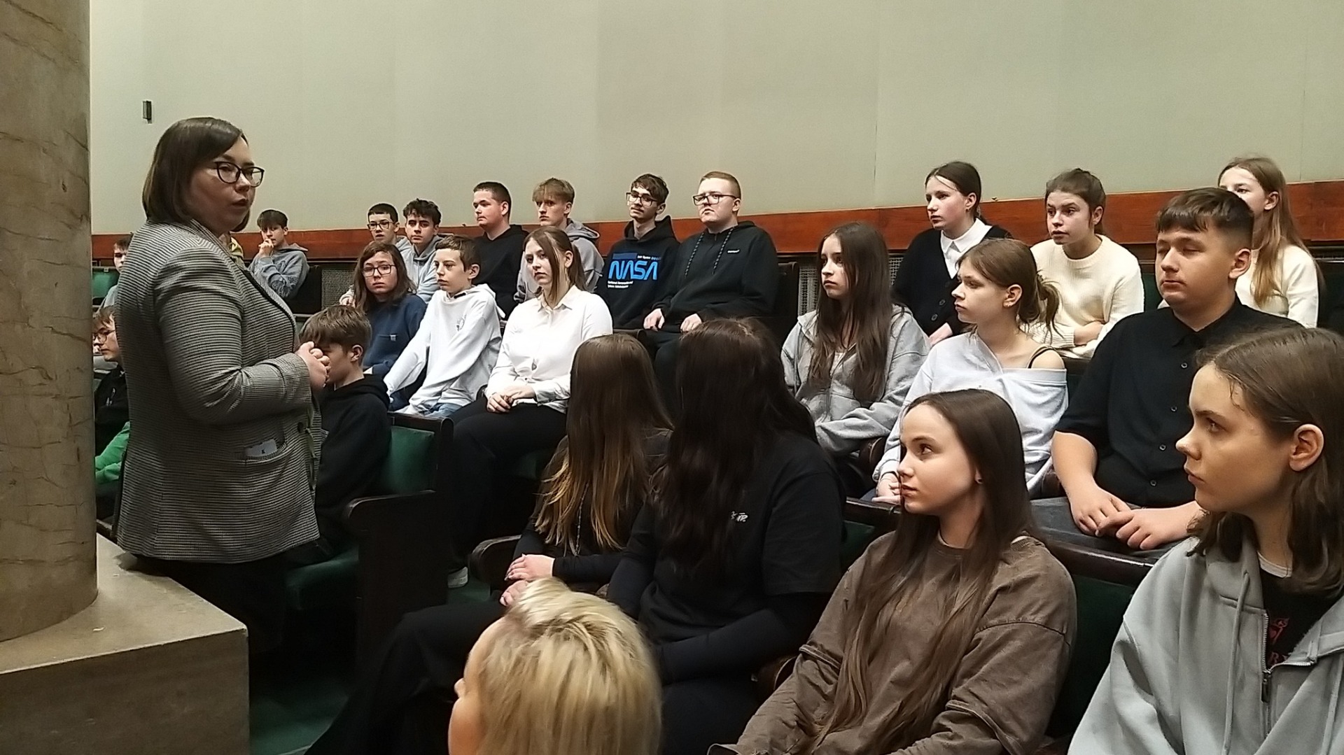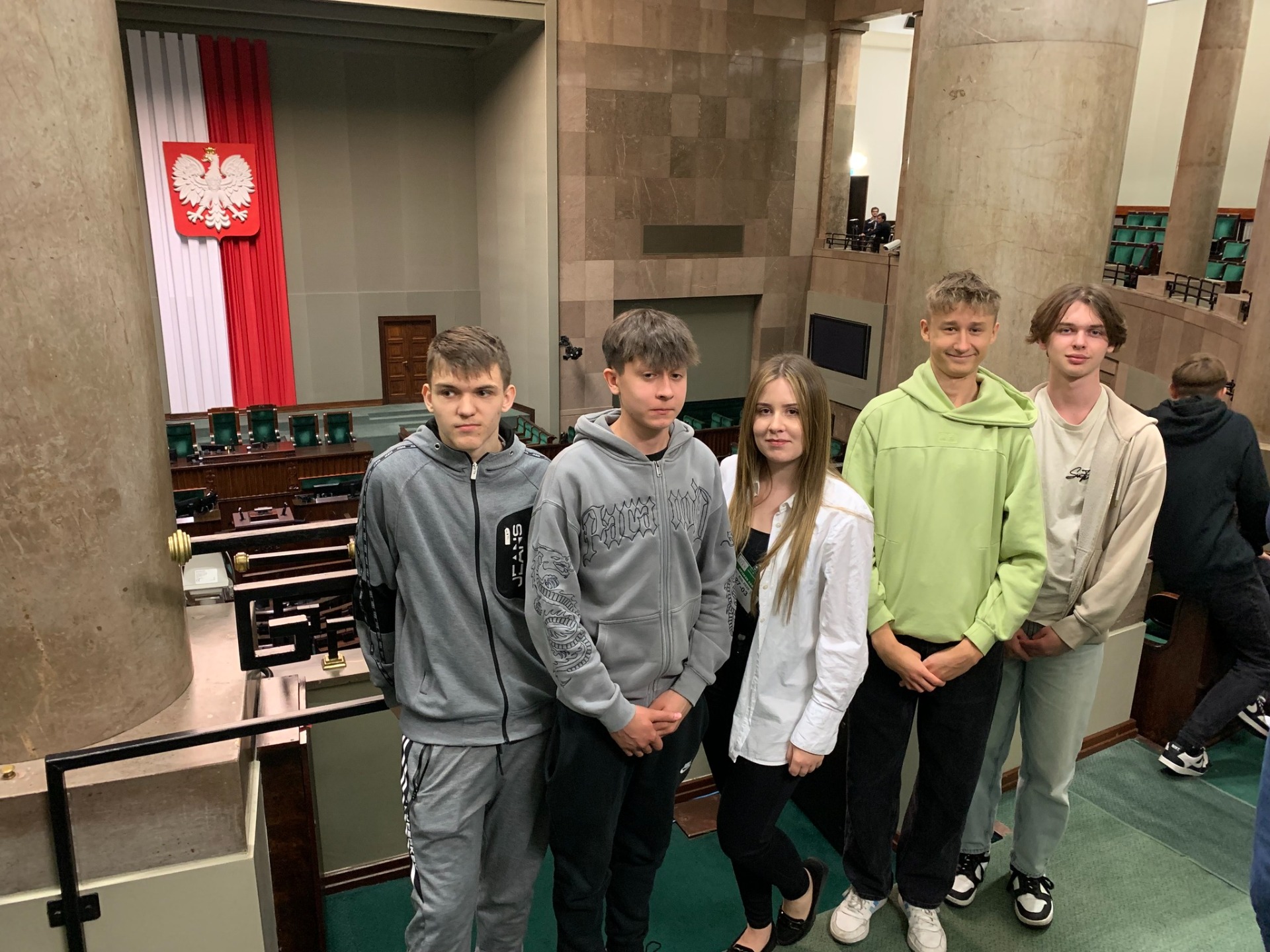 Następnie udaliśmy się do Sejmu RP i rozpoczęliśmy nasze zwiedzanie. Przewodnik opowiedział o kluczowych wydarzeniach, które miały miejsce w Sejmie, oraz przedstawił zasady funkcjonowania parlamentu. Mieliśmy także możliwość zobaczenia sal obrad i innych ważnych pomieszczeń, które na co dzień są niedostępne dla odwiedzających. 📜