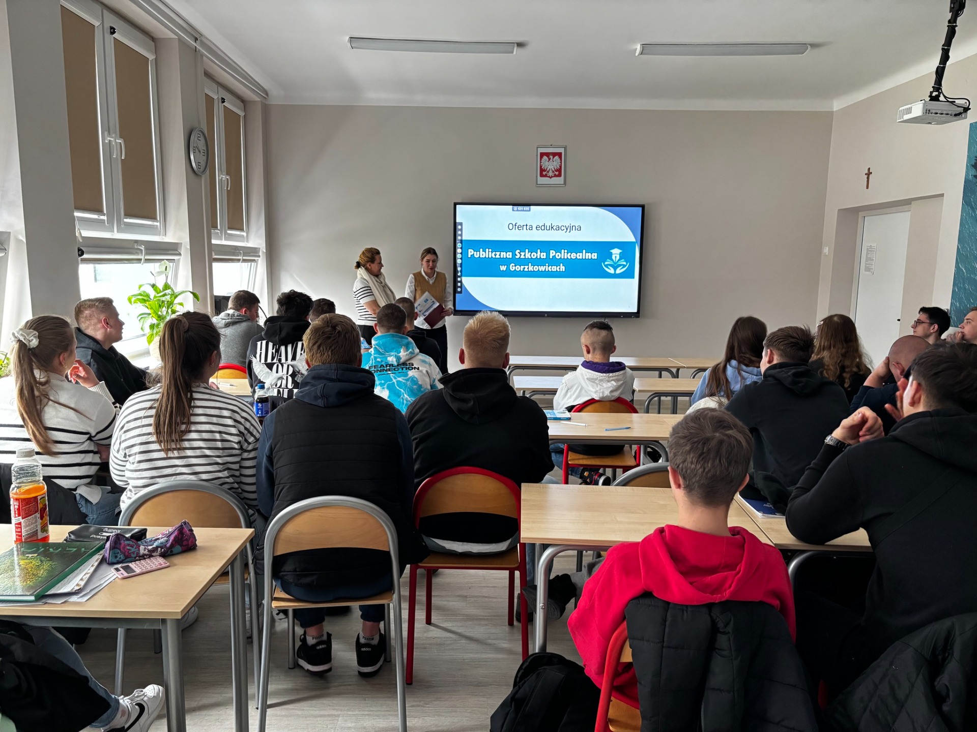W dniu 31 marca 2025 r. odbyło się spotkanie klas maturalnych z przedstawicielami Publicznej Szkoły Policealnej w Gorzkowicach. W trakcie spotkania uczniowie mieli okazję zapoznać się z różnorodnymi kierunkami kształcenia, które szkoła oferuje.🧑🏫