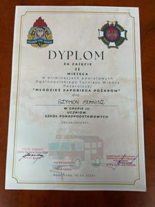 W dniu 10 kwietnia 2025 r., odbył się etap powiatowy Ogólnopolskiego Turnieju Wiedzy Pożarniczej. Naszą szkołę reprezentował Szymon Stanisz, który zajął II miejsce. 🥈Serdecznie gratulujemy 👏👏👏