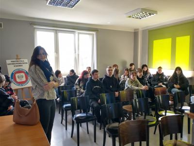 W dniu 7 kwietnia 2025 r. uczniowie naszej szkoły pod opieką p. Anny Baron i p. Niny Michalczyk odwiedzili Powiatową Stację Sanitarno- Epidemiologiczną w Radomsku. W tym dniu odbyły się w siedzibie PSSE w Radomsku Dni Otwarte pt. „Bezpieczeństwo zdrowotne - wspólna odpowiedzialność” przygotowane z okazji Światowego Dnia Zdrowia. Uczniowie wysłuchali prelekcji i porad dotyczących przede wszystkim tego, jak zapobiegać chorobom, czyli jak dbać o zdrowie, czego unikać, aby nie zachorować.