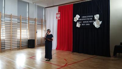 Zastępca Burmistrza Kamieńska Pani Anna Liszka w swoim przemówieniu zwróciła uwagę na rolę edukacji w kształtowaniu przyszłości lokalnej społeczności. Życzyła uczniom motywacji, pasji do nauki oraz odwagi w realizacji swoich marzeń.