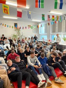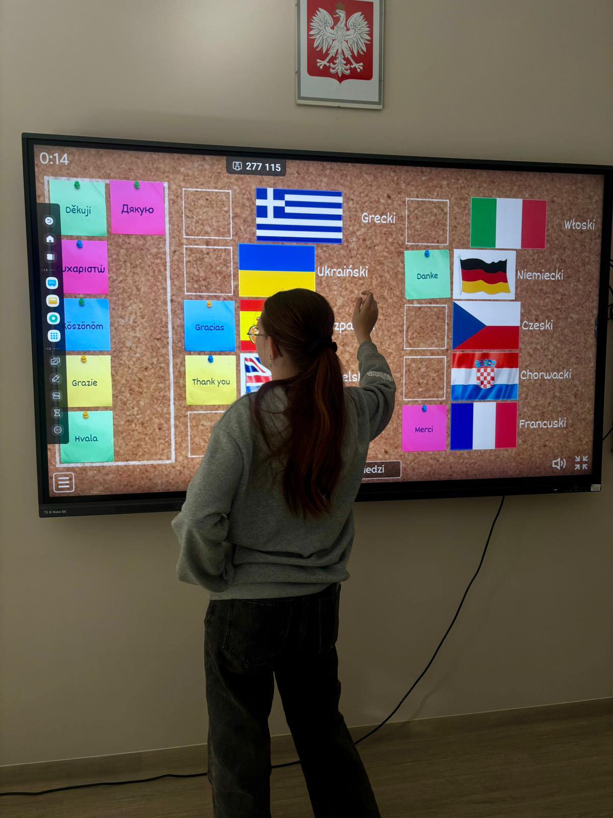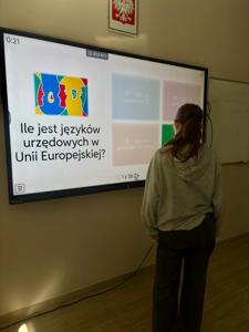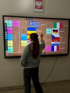 👉 Rozgrzewkę rozpoczęliśmy od quizu ze znajomości flag. Najlepszy okazał się być Michał Popczyk z klasy III Technikum!