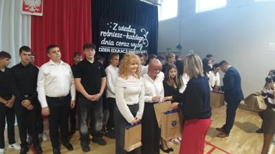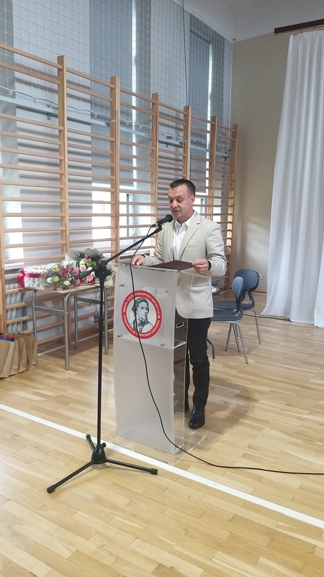 Pani Dyrektor Ewa Ziółkowska przekazała najserdeczniejsze życzenia nauczycielom oraz wszystkim pracownikom oświaty, wyrażając wdzięczność za codzienny trud, zaangażowanie i oddanie. Pan Jarosław Bąkowicz – Burmistrz Kamieńska życzył nauczycielom satysfakcji z wykonywanej pracy oraz przekazał słowa uznania za trud włożony w kształtowanie postaw życiowych naszej młodzieży. Ponadto organ prowadzący ufundował dla uczniów klas pierwszych oraz ich wychowawców drobne upominki. Podczas uroczystości głos zabrał również pan Jacek Krupa - Radny Powiatu Radomszczańskiego, który w swoim przemówieniu złożył wyrazy uznania dla całego grona pedagogicznego. Zwrócił uwagę na ogromną wartość pracy nauczycieli oraz ich wpływ na przyszłość młodego pokolenia.
