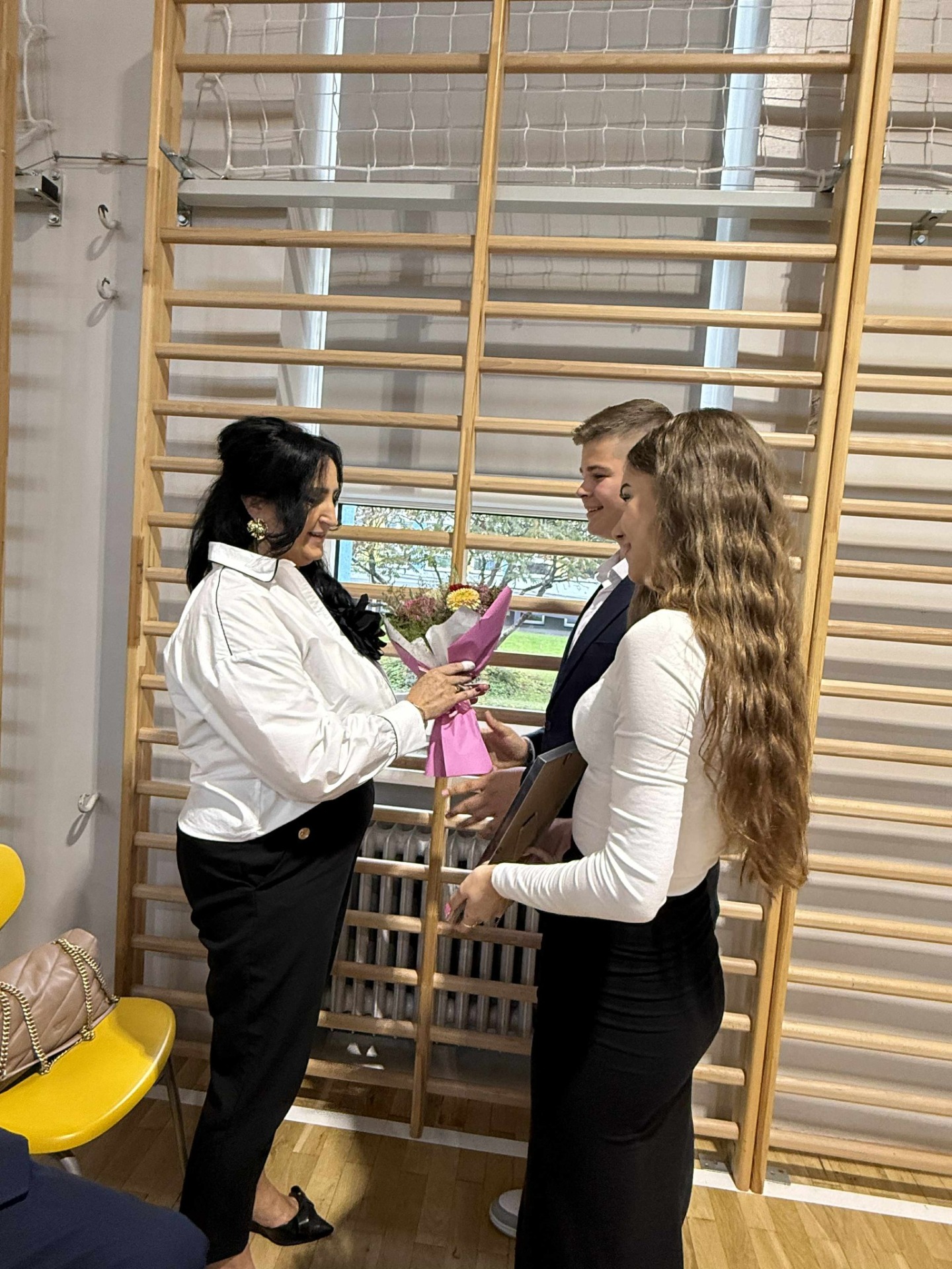 Reprezentanci klas pierwszych złożyli uroczyste przyrzeczenia, po których odbyła się część artystyczna akademii. W imieniu całej społeczności uczniowskiej, przedstawiciele Samorządu Uczniowskiego złożyli najserdeczniejsze życzenia oraz wręczyli kwiaty Pani Dyrektor Ewie Ziółkowskiej oraz Pani Wicedyrektor Barbarze Tkacz. Podziękowali za nieustanne zaangażowanie, otwartość, życzliwość i wsparcie, jakie otrzymujemy każdego dnia 💐❤️