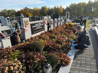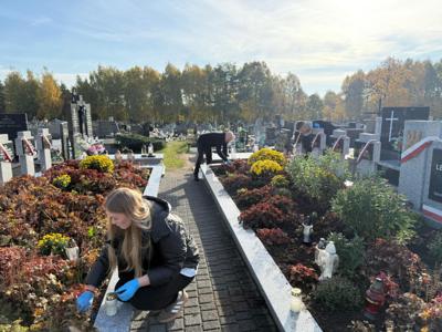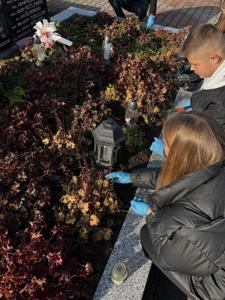 Wspólnie odmówiliśmy modlitwę, a młodzież uporządkowała groby poległych żołnierzy. Pani Renata Trzepańska przy każdym grobie podzieliła się krótkim wspomnieniem o tym, kim byli zmarli i jaką rolę odegrali w życiu naszej szkoły. Dziękujemy Pani Dyrektor Ewie Ziółkowskiej za zakupienie pięknych zniczy, a młodzieży za zaangażowanie, pamięć i pracę na rzecz upamiętnienia tych, którzy odeszli.