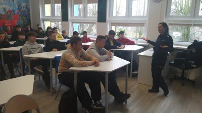 St. asp. Agnieszka Kropisz podkreśliła, jak ważne jest świadome podejmowanie decyzji, reagowanie na przejawy przemocy oraz zgłaszanie sytuacji zagrażających bezpieczeństwu. Takie spotkania to ważny element budowania świadomości prawnej i poczucia odpowiedzialności wśród młodych osób.