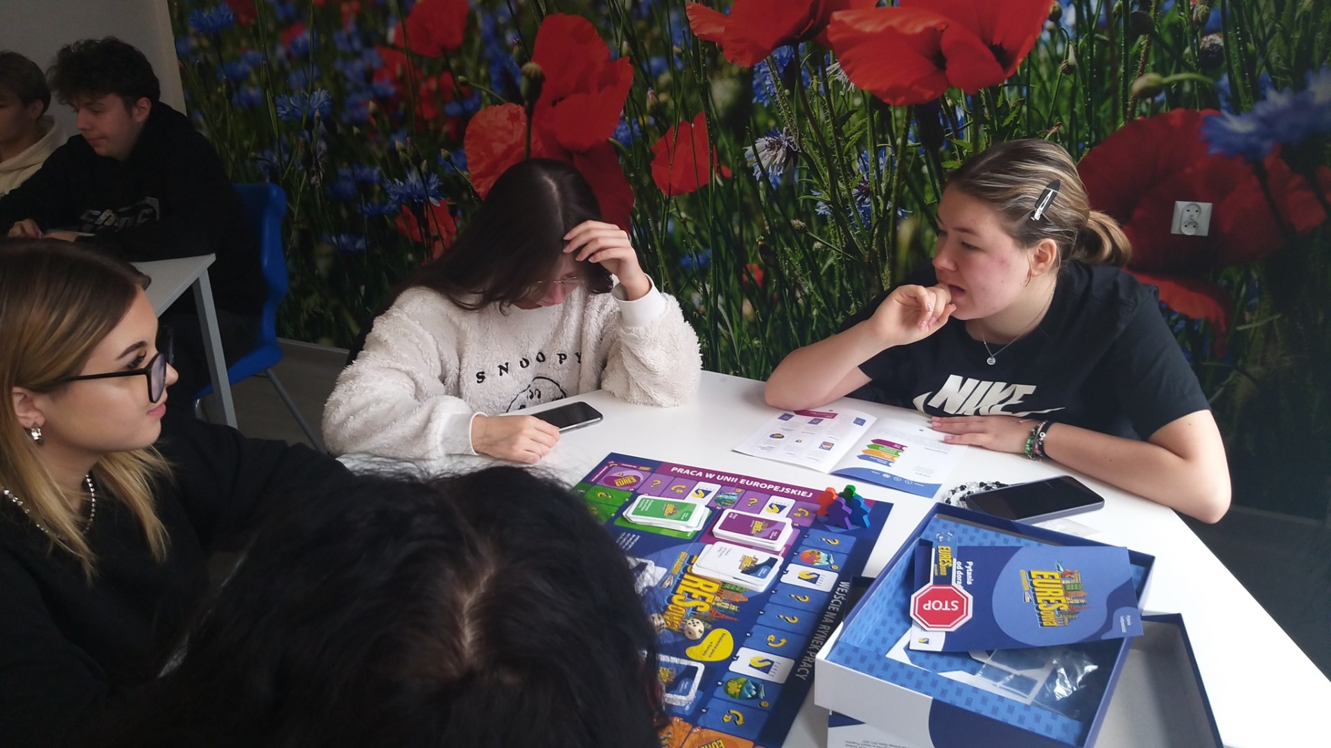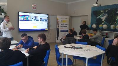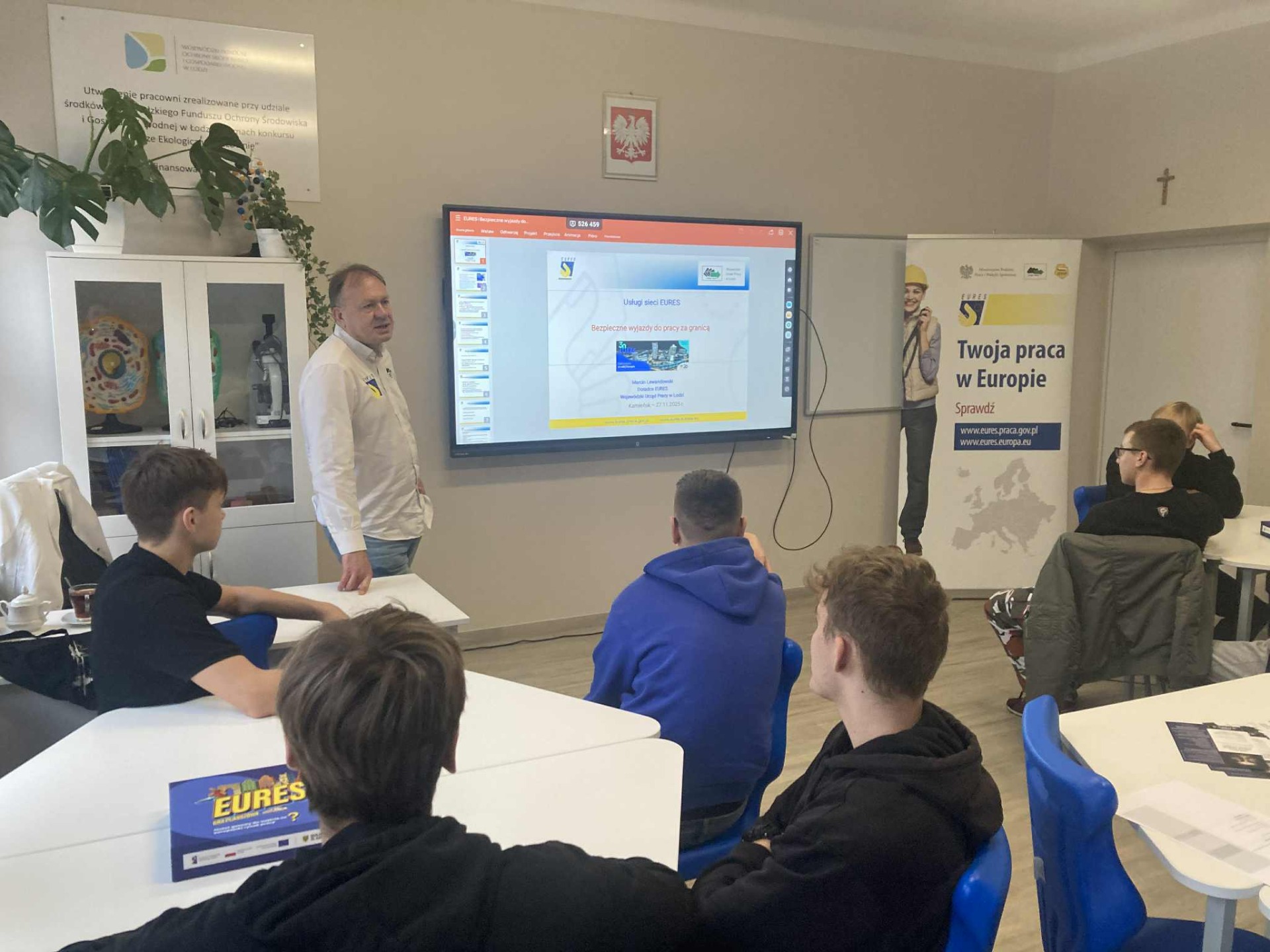 27 listopada 2025 r. mieliśmy przyjemność gościć Pana Marcina Lewandowskiego – doradcę EURES z Wojewódzkiego Urzędu Pracy w Łodzi. 👨🏫 Uczniowie klas IV LO i III LO wysłuchali interesującej prelekcji o tym, jak bezpiecznie znaleźć pracę w krajach UE 🌍, a następnie wzięli udział w grach planszowych oraz quizach dotyczących funkcjonowania i praw obywateli poza granicami Polski. 🎲❓