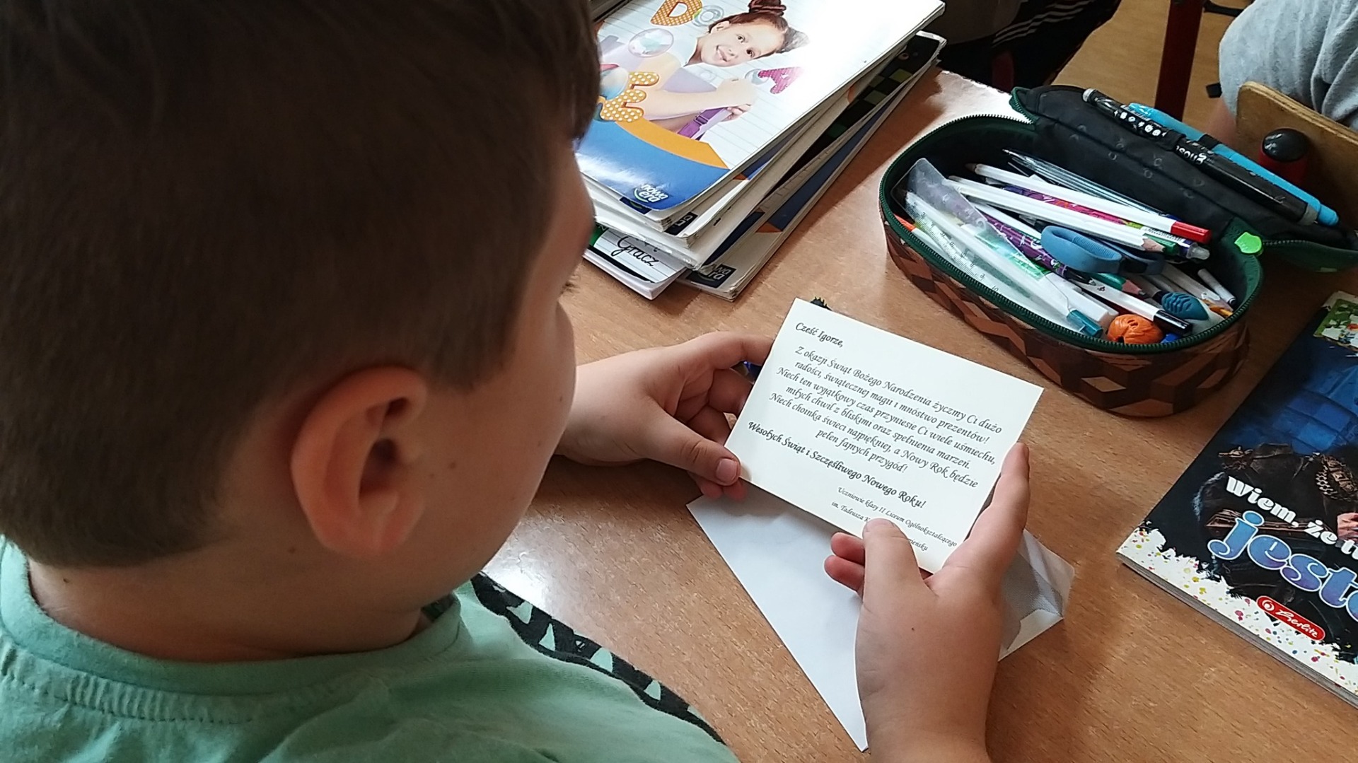 W przedświątecznym czasie doszło do wyjątkowego spotkania uczniów klasy II liceum z uczniami klasy IIIa Publicznej Szkoły Podstawowej im. Jana Pawła II w Kamieńsku. W ramach międzyszkolnej inicjatywy odbyła się wymiana kartek świątecznych, która przyniosła wiele radości zarówno młodszym, jak i starszym uczestnikom.