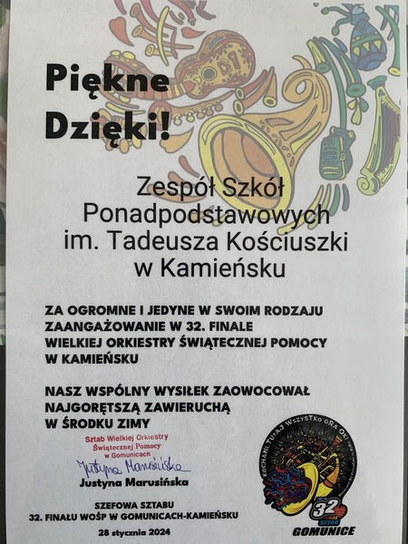 12 lutego 2024 Aktualności 32. Finał WOŚP ❤️❤️❤️ 32. Finał WOŚP już za nami ❗️❗️❗️ Zakończyliśmy go kwotą zebraną do puszki 447,32 zł. Dziękujemy za WIELKIE SERCA ❤️❤️❤️ Czytaj więcej